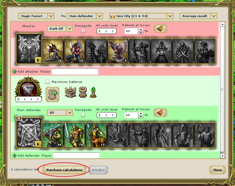 In order to have possibility of battle result calculating, you can purchase 100, 1000 or 5000 battle calculations. The more you purchase at once the less 1 calculation costs.