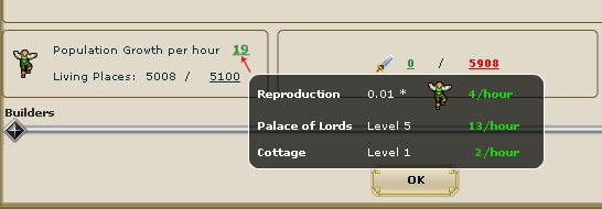 Population Growth is limited to all Cottages and Main Building’s capacity. The number of living places can also be found inside the Main Building.